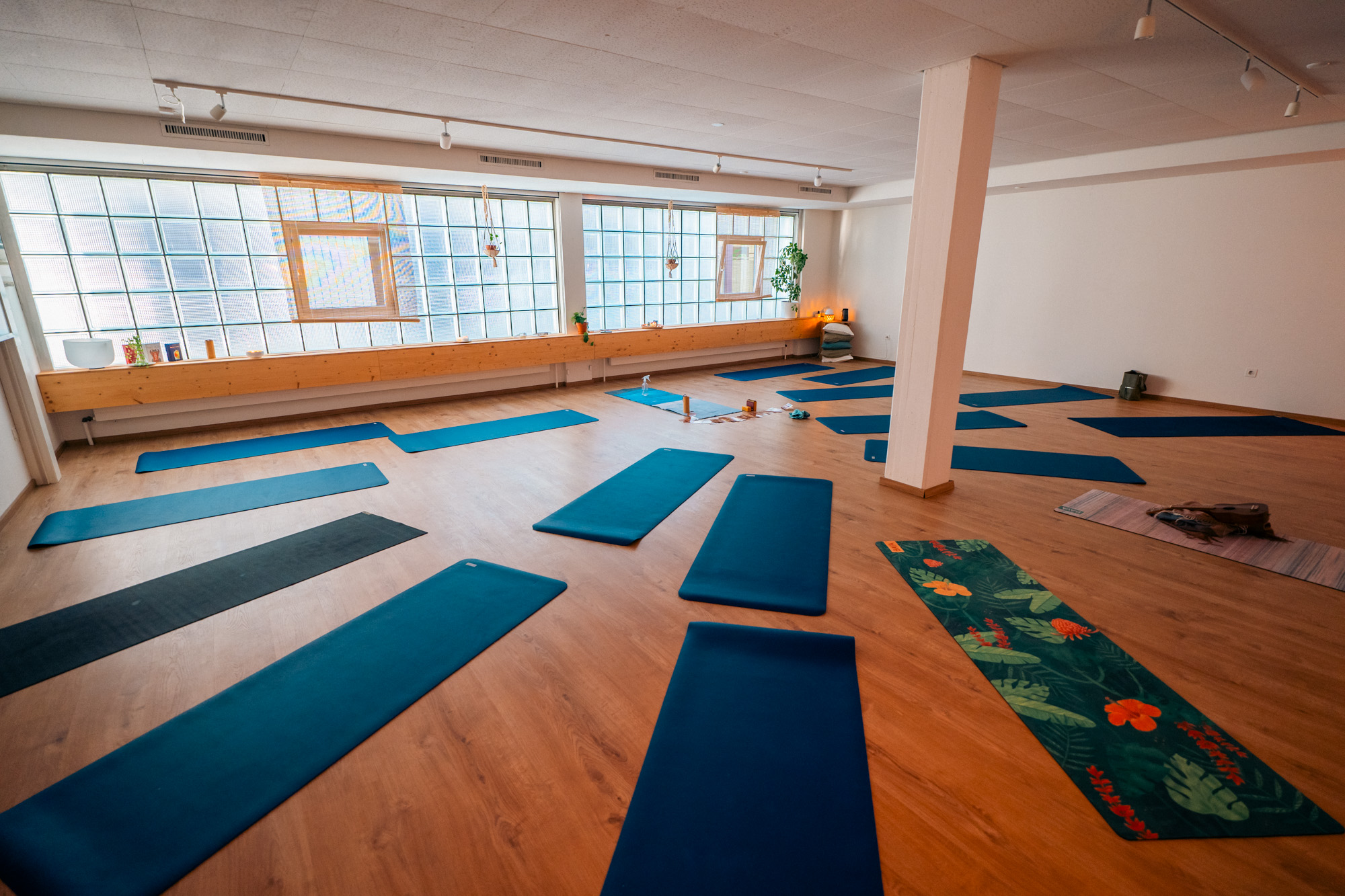 Le prix de location de cet espace inclus du matériel de yoga pour 15 personnes (tapis, blocs de yoga, couvertures et coussins).